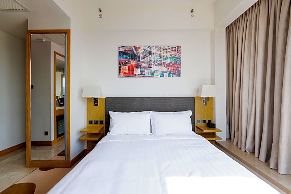 Room options span several styles, including Premier (162 sqft) with a Double bed and City View, and Superior (162 sqft) also featuring a Double bed with City View. An Executive, Double, City View option sits in the same compact footprint, all non-smoking and designed to accommodate 2 adults and 1 child. These city-view choices provide a comfortable base for couples or small families exploring Hong Kong.